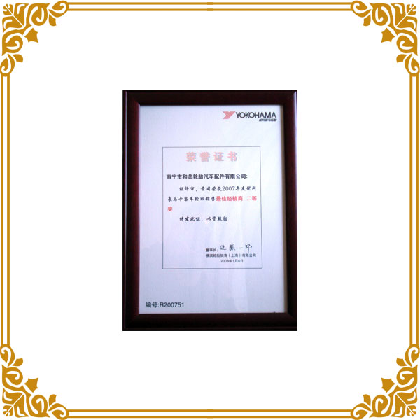 橫濱經(jīng)銷商證書